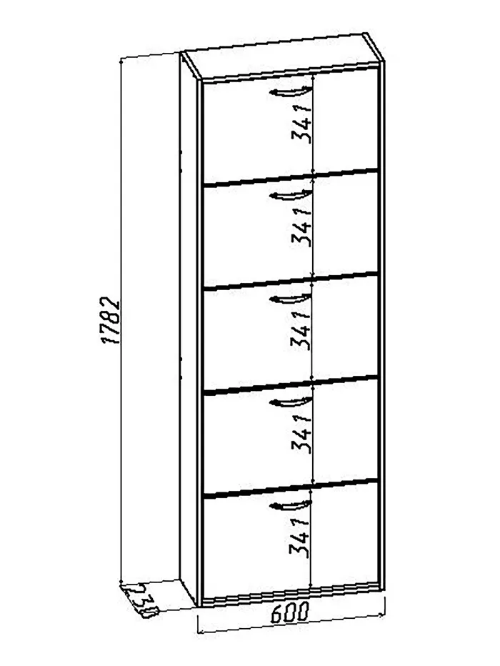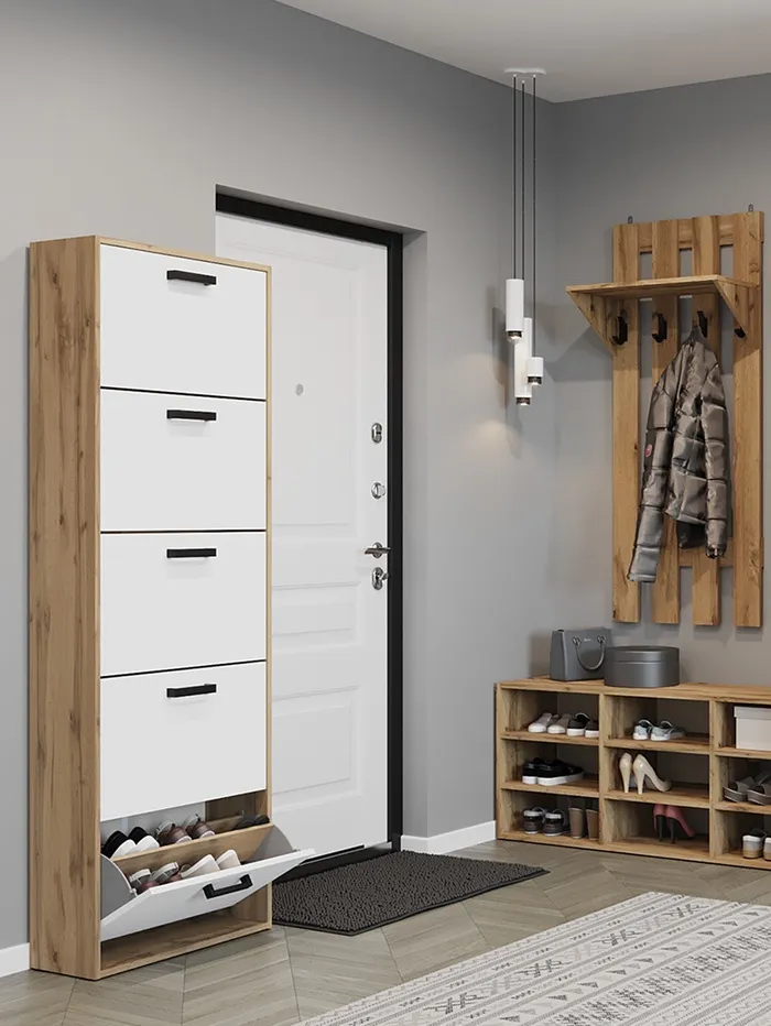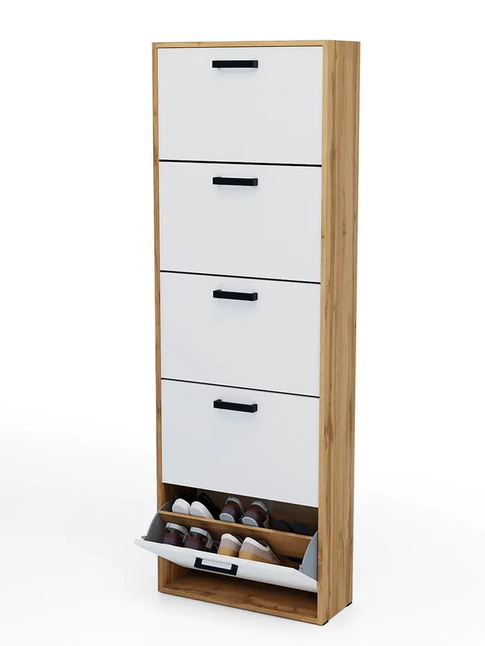 Обувница высокая «Клик Мебель. Приветливая-3», 5 ящиков, 600×222×1800 мм, дуб вотан/белый — Характеристики