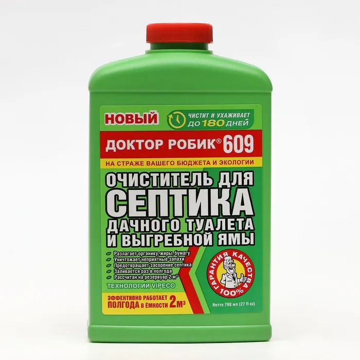Очиститель для септиков и дачных туалетов Доктор Робик 609 — это эффективное средство, предназначенное для поддержания чистоты и функциональности септиков и дачных туалетов.
