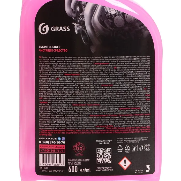 Чистящее средство с высоким пенообразованием, в составе которого отсутствует щелочь. Предназначено для очистки моторного блока и частей двигателя от масляных пятен, потеков смазки, налипшей пыли, насекомых и другой дорожной грязи. Новая бесщелочная формула на водной основе с применением эффективных органических растворителей и комплекса поверхностно-активных веществ, безопасно для лакокрасочного покрытия автомобиля. Не вызывает коррозии алюминиевых деталей. Состав обладает высокой очищающей способностью и при этом не имеет резкого запаха.