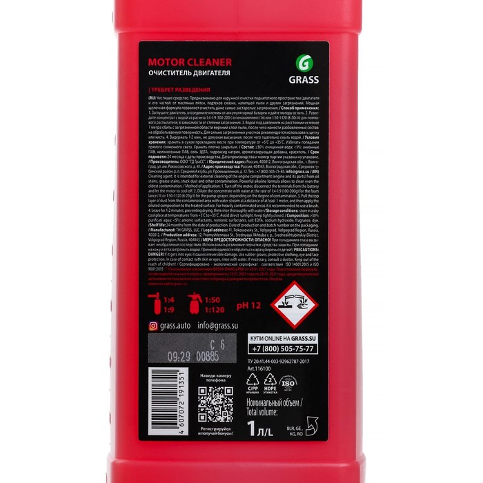 Назначение: Средство автохимии предназначено для очистки моторного блока и частей двигателя от масляных пятен, потеков смазки, налипшей пыли и другой дорожной грязи.