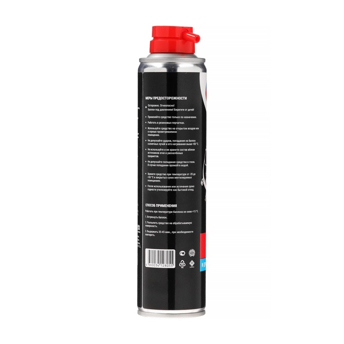 Встряхните баллон и распылите очиститель на обрабатываемые поверхности при температуре баллона не ниже +15С. Подождите 20-30 минут, удалите оставшиеся загрязнения с помощью мягкой ткани. При необходимости повторите обработку.
