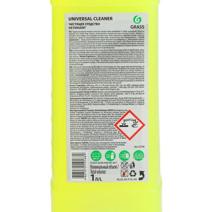 Назначение: Универсальный моющий состав для очистки салона автомобиля от любых загрязнений. Это средство автохимии подходит для чистки ткани, велюра, искусственной кожи, пластика и стекол.