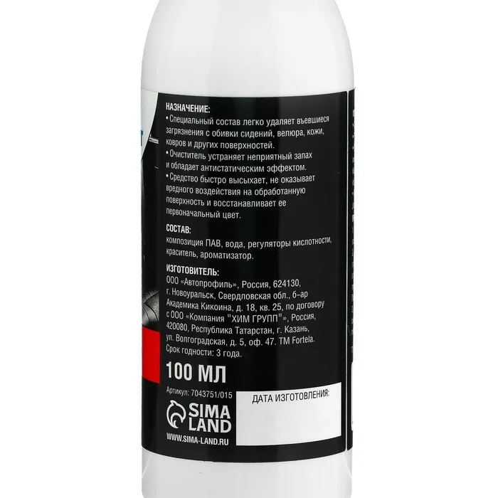 Специальный состав легко удаляет въевшиеся загрязнения с обивки сидений, велюра, кожи, ковров и других поверхностей.
