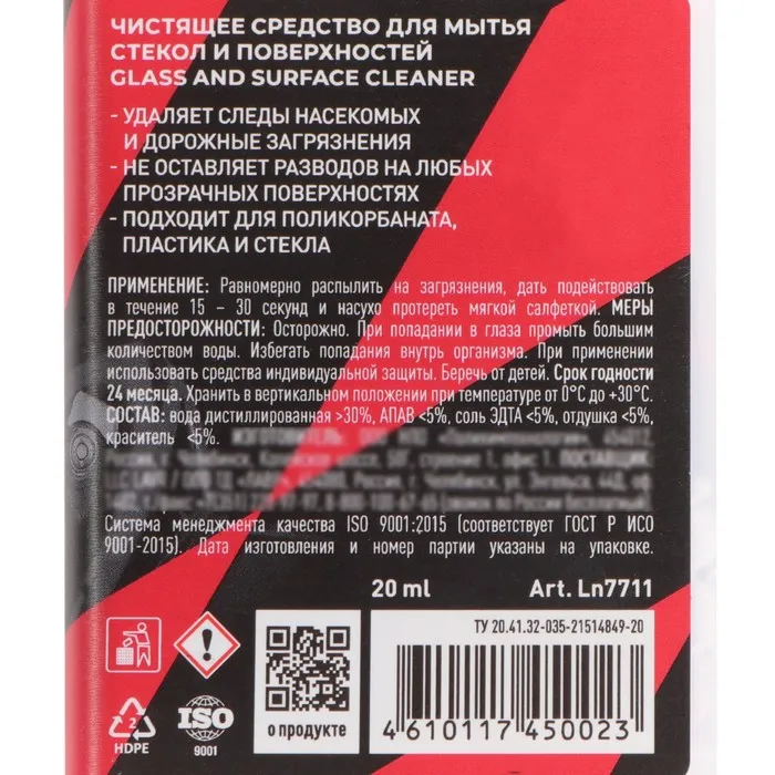 Очиститель шлема и визора LAVR MOTO, 20 мл Ln7711 — Характеристики