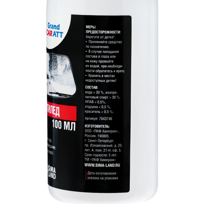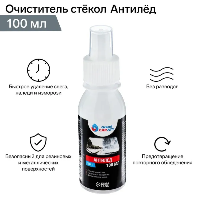 Очиститель стёкол зимний Grand Caratt Антилёд 3в1, спрей 100 мл — Характеристики