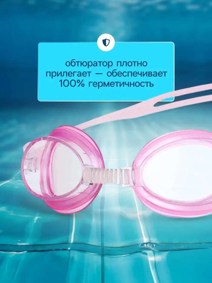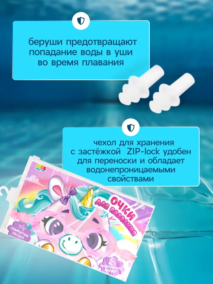 В комплект входят беруши, плотно закрывающие уши во время занятий в бассейне.