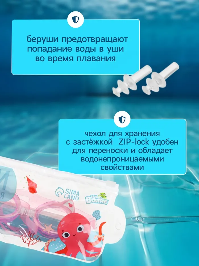 Беруши предотвращают попадание воды и микроорганизмов в уши и нос во время плавания. За счёт эргономичной формы беруши плотно прилегают к телу.