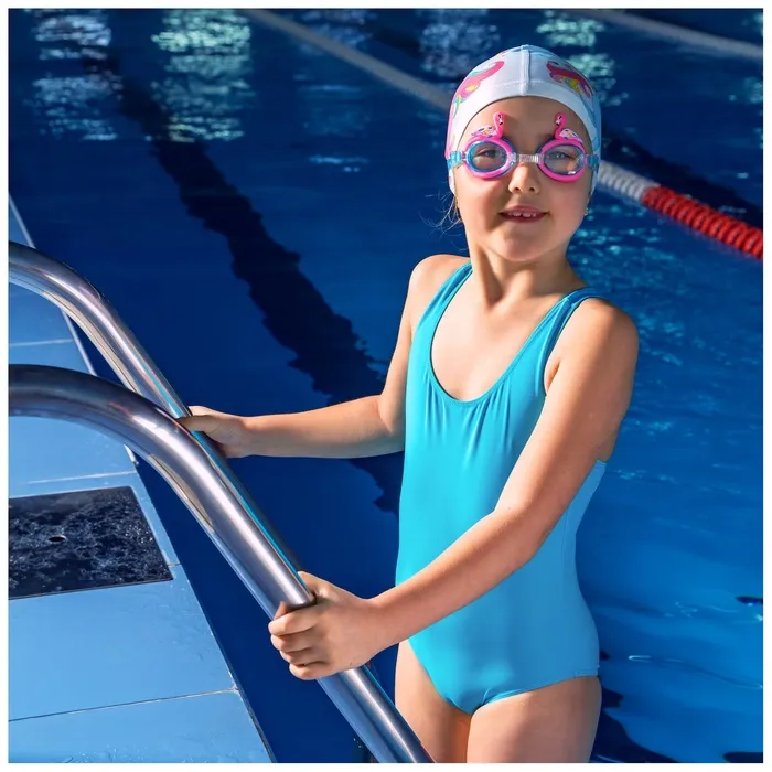 Линзы изготовлены из поликарбоната, имеют покрытие от УФ-излучения для защиты глаз ребёнка. Покрытие антифог защищает от запотевания очков. Мягкий и комфортный уплотнитель обеспечивает герметичность во время плавания. Носовая перемычка и ремешок регулируются и обеспечивают надёжную посадку.