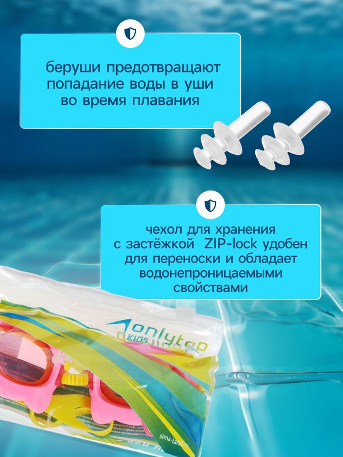 Очки для плавания детские ONLYTOP «Бантик», беруши, цвет розовый — Характеристики