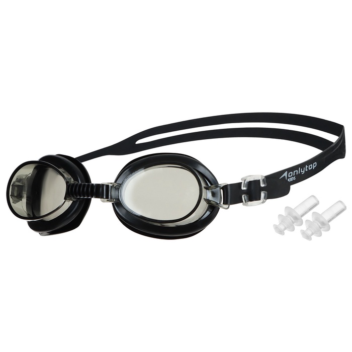 Очки для плавания детские ONLYTOP, беруши, цвет чёрный