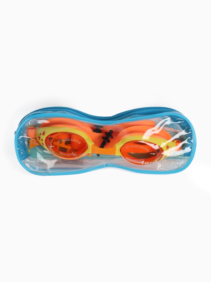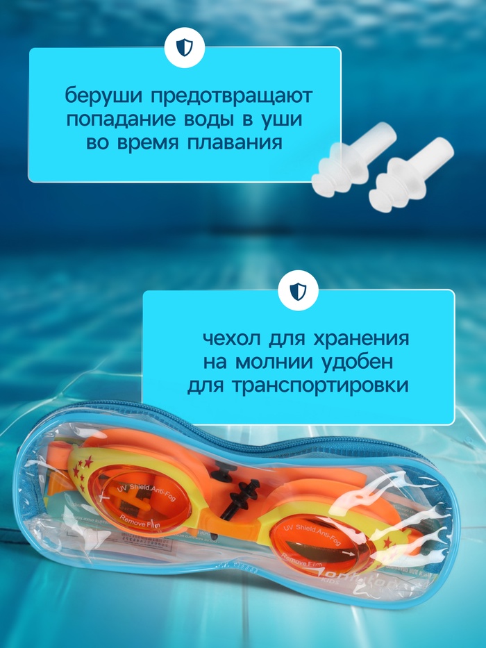 Очки для плавания детские ONLYTOP, беруши, цвет оранжевый