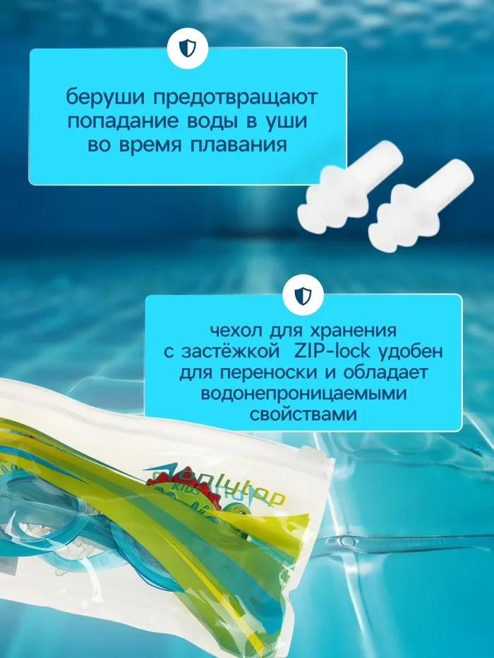 Беруши предотвращают попадание воды и микроорганизмов в уши и нос во время плавания. За счёт эргономичной формы беруши плотно прилегают к телу.