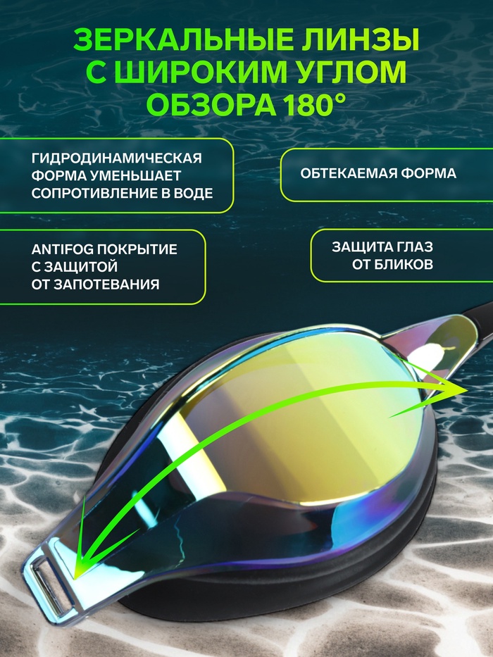 - Зеркальные линзы с широким углом обзора: 180-градусный угол обзора позволяет лучше ориентироваться под водой, а зеркальное покрытие снижает воздействие бликов, что особенно важно при ярком солнечном свете;