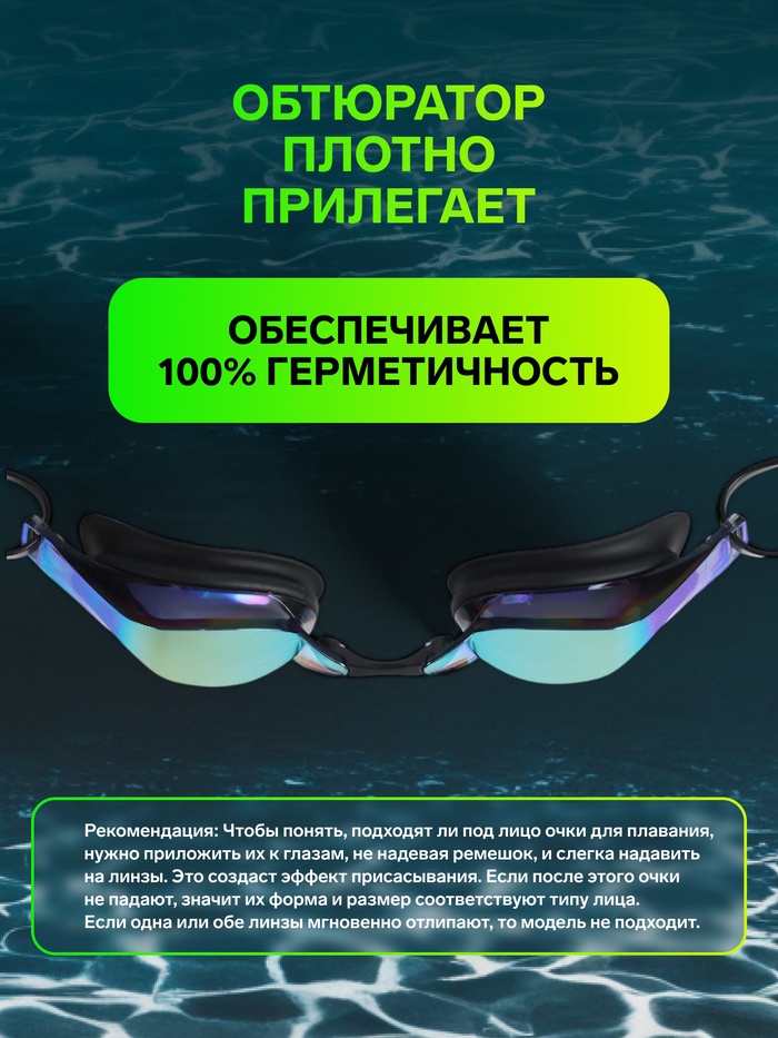 - Дополнительная гидроизоляция: Очки оснащены дополнительным защитным слоем, который предотвращает проникновение воды;