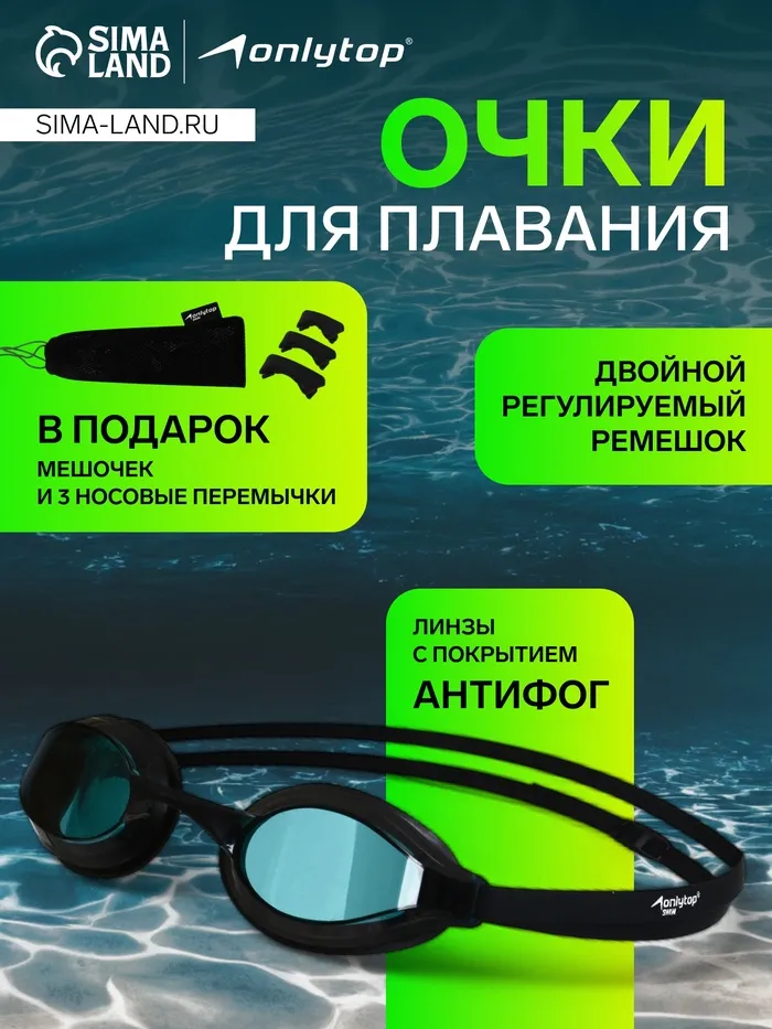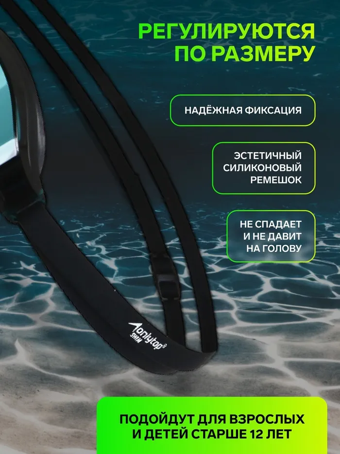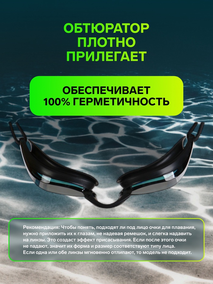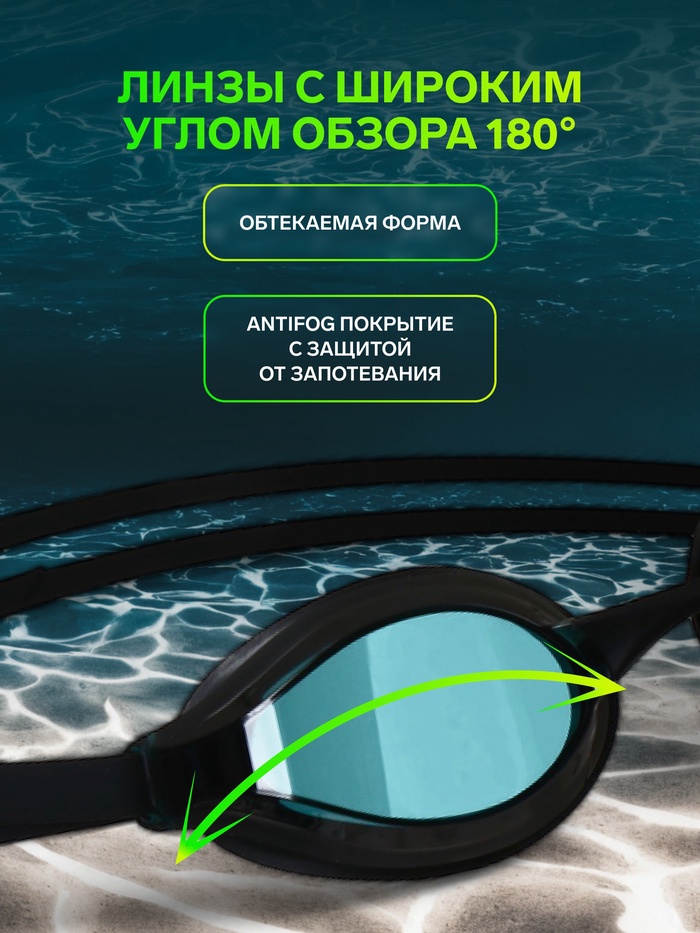 Тренировочные очки подходят для тренировок, соревнований и обычного плавания. Силиконовый обтюратор не пропускает воду, поэтому в очках вы будете с лёгкостью ориентироваться под водой с открытыми глазами. Набор носовых перемычек и регулируемый ремешок позволяют настроить очки под форму лица. Линзы покрыты специальным составом, который препятствует запотеванию и защищает от воздействия UV-излучения.