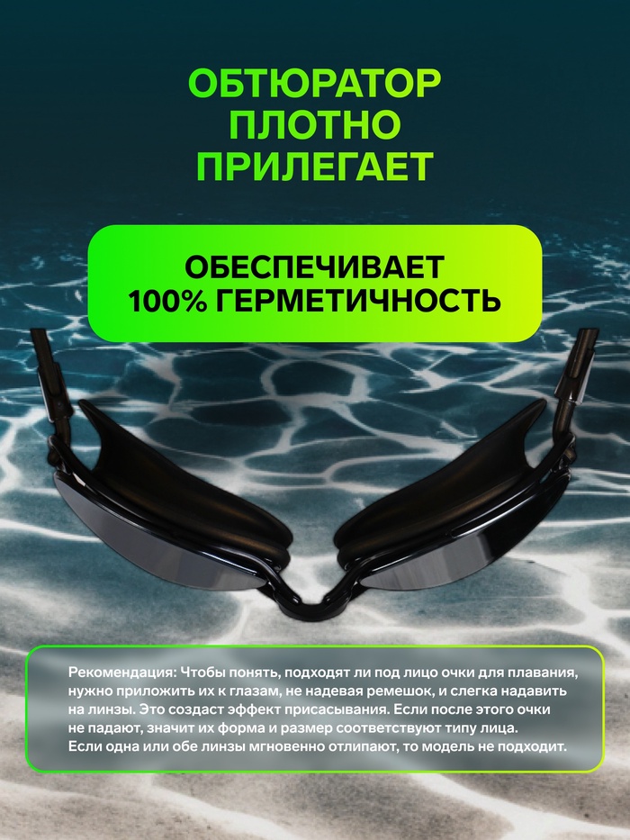 Тренировочные очки подходят для тренировок, соревнований и обычного плавания. Силиконовый обтюратор не пропускает воду, поэтому в очках вы будете с лёгкостью ориентироваться под водой с открытыми глазами. Набор носовых перемычек и двойной регулируемый ремешок позволяют настроить очки под форму лица. Зеркальное покрытие защищает глаза от бликов и от воздействия UV-излучения.