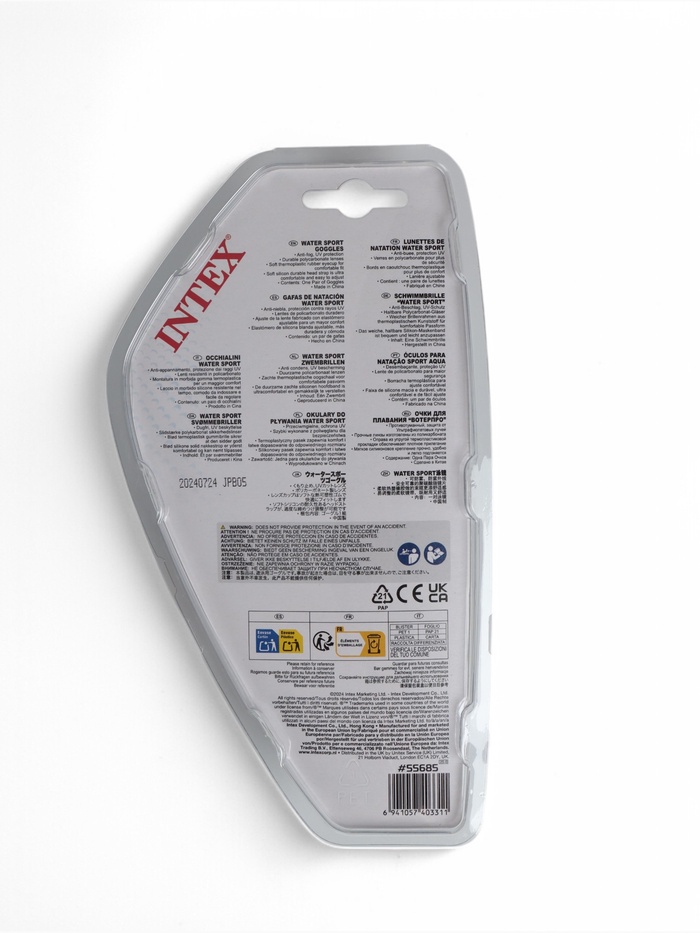 Очки для плавания Water Sport Intex 55685. Специальное покрытие на линзах предотвращает их запотевание. Линзы не пропускают ультрафиолет. Ободок выполнен из латекса, не вызывает аллергию. Применены улучшенные, эластичные и прочные ремешки. Безопасные поликарбонатные линзы. Округлый дизайн создает идеальную обтекаемость. Стильные тонированные линзы улучшают видимость в воде. Предназначены для детей и взрослых, в возрасте от 14 лет.