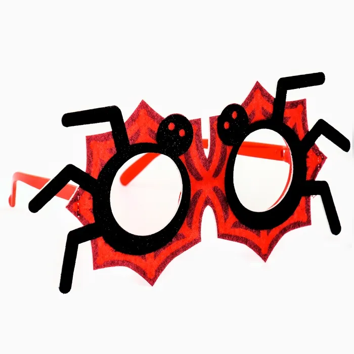 - Очки выполнены в виде забавного паука. Яркие цвета и реалистичные детали создают праздничное настроение.