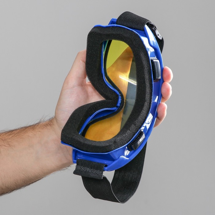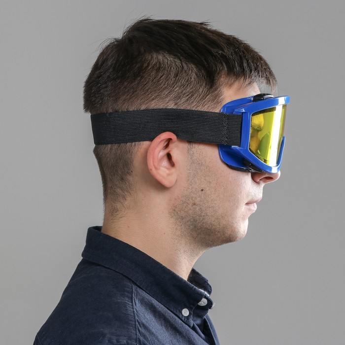 Очки-маска для езды на мототехнике, стекло двухслойное желтое, синие