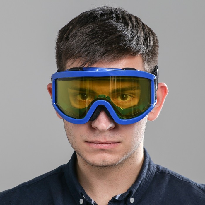 Очки-маска для езды на мототехнике, стекло двухслойное желтое, синие — Характеристики