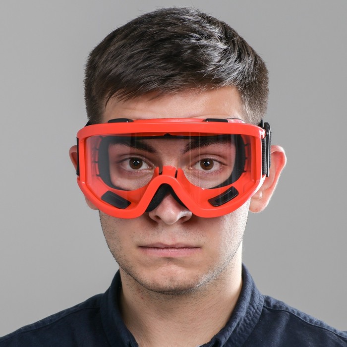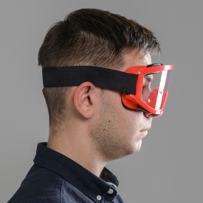 Очки-маска для езды на мототехнике, стекло прозрачное, красные