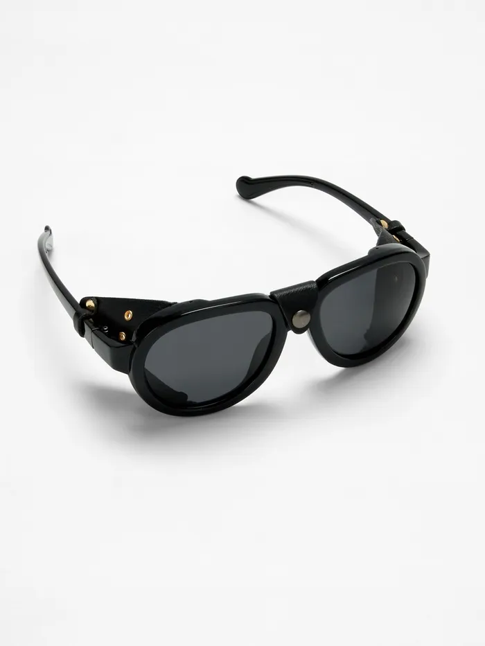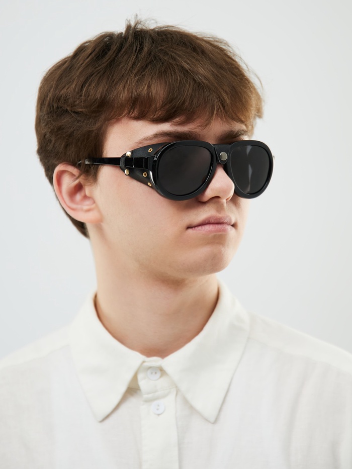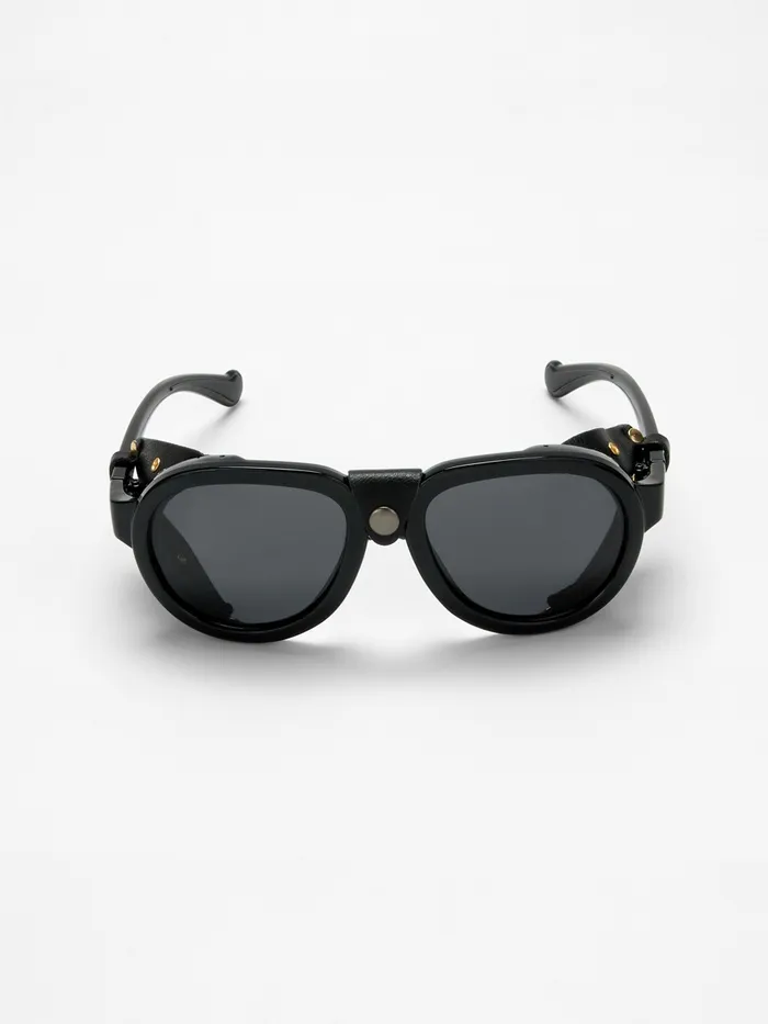 Очки солнцезащитные круглые, uv 400, кожаные шторки, дужка 14.1 см, ширина 12.1 см, линза 5.2×5 см, чёрные — Характеристики