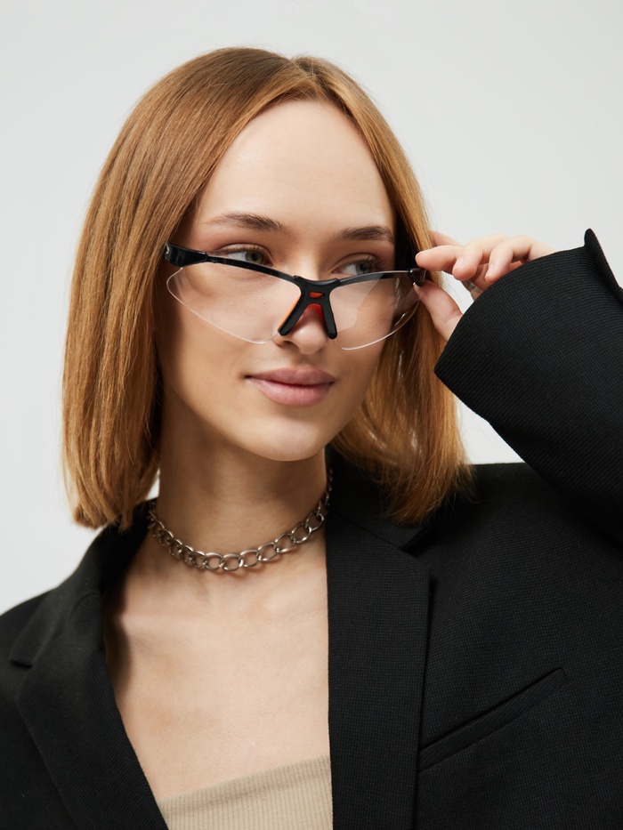 - Стильный дизайн: черная оправа и прозрачные линзы гармонично сочетаются с любым спортивным и повседневным стилем.