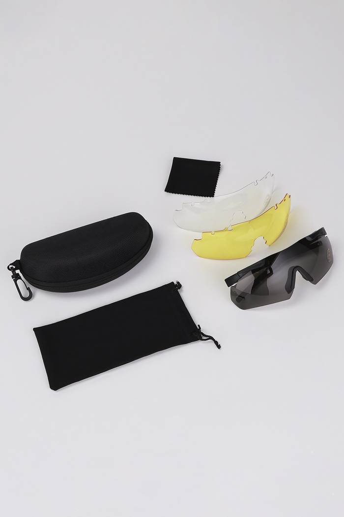 Очки защитные "Тактические" противоосколочные, со 3 сменными линзами, на резинке, чехол, цвет хаки