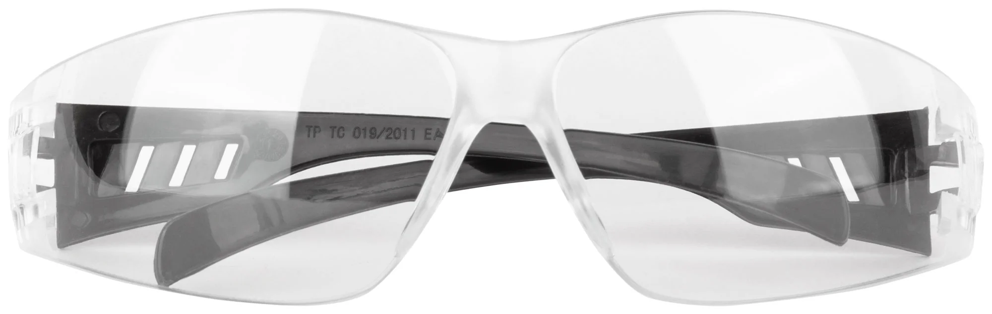 Очки оснащены дужками и выполнены из прочного поликарбоната, что обеспечивает их устойчивость к повреждениям и легкость. Прозрачные линзы не искажают видимость, позволяя сосредоточиться на задачах без отвлечения.