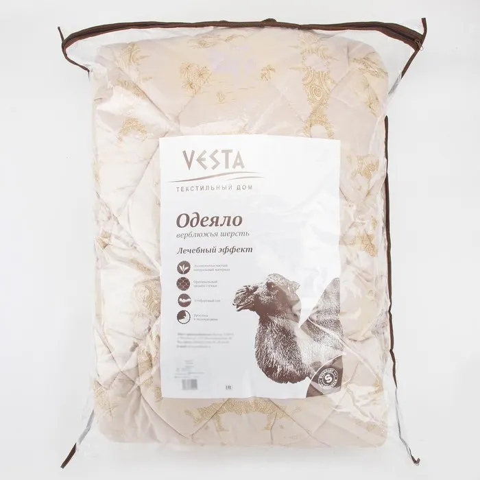 Одеяло зимнее 140х205 см, шерсть верблюда, ткань глосс-сатин, п/э 100% — Характеристики