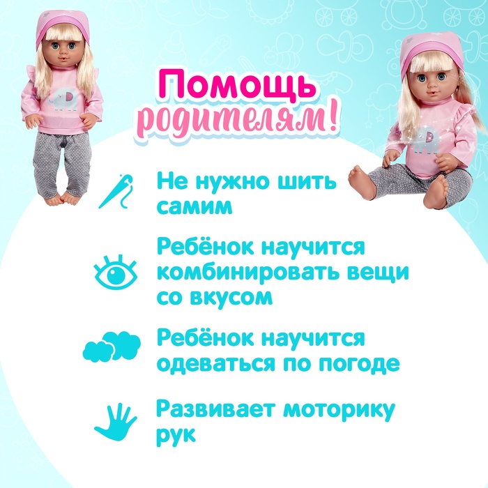 Одежда для пупса «Слоник», штаны, кофточка, шапочка — Характеристики