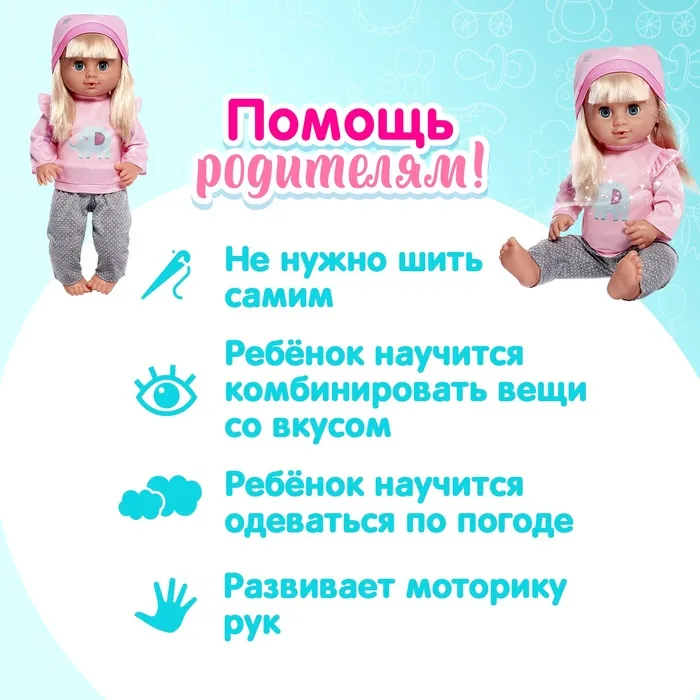 Комплект одежды для игрушечных малышей «Слоник» позволит ребенку создать уникальные образы для своего любимого пупса. Этот набор разработан специально для кукол ростом от 37 до 40 см.