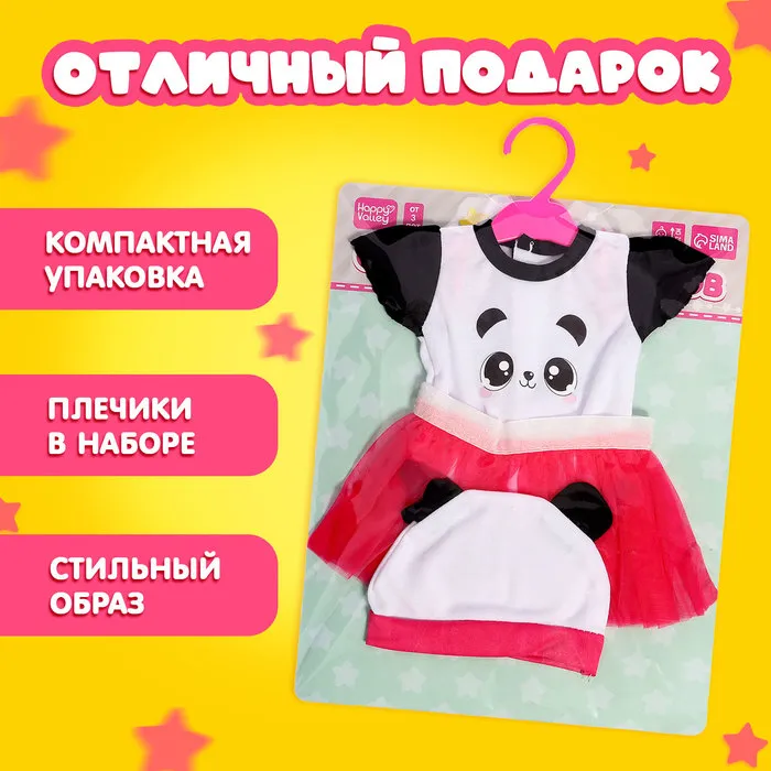 Маленькие леди переодевают любимых пупсиков несколько раз в день. Ведь для разных случаев пупсу нужен соответствующий дресс-код. Одежда для пупсов «Панда» — это милый и практичный комплект, включающий боди, юбочку и шапку.