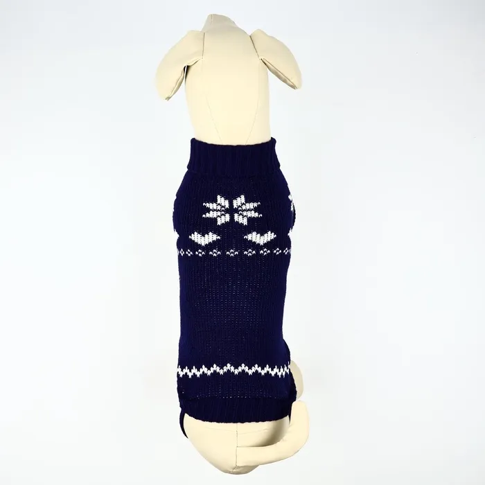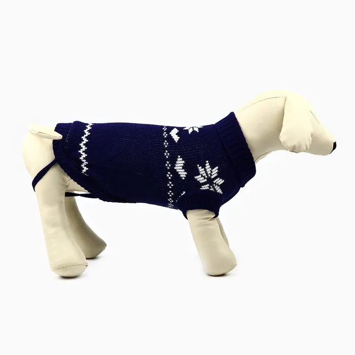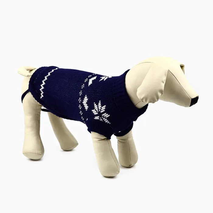 Одежда для собак. Свитер вязаный с орнаментом «Новогодний», синий, размер M