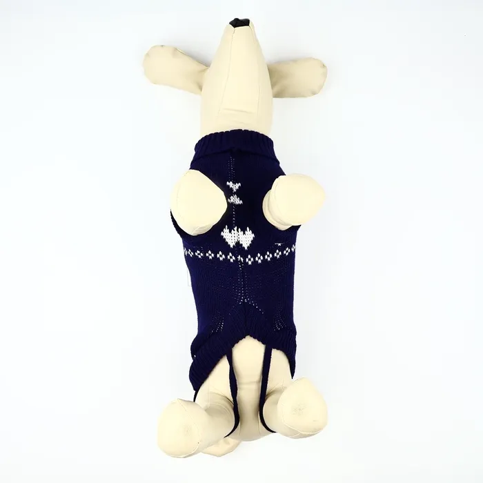Одежда для собак. Свитер вязаный с орнаментом «Новогодний», синий, размер M — Характеристики