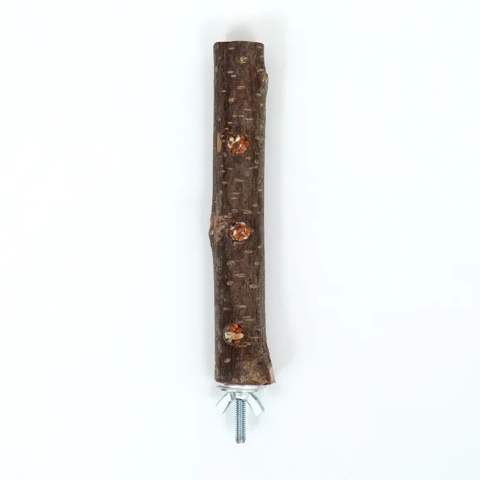 Жердочка имеет удобную форму, которая позволяет птице комфортно сидеть и отдыхать. Кроме того, она оснащена специальным лакомством, которое обеспечивает дополнительный источник витаминов и минералов для вашего питомца.