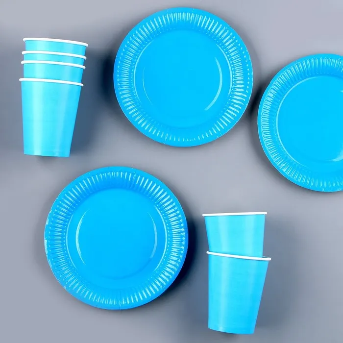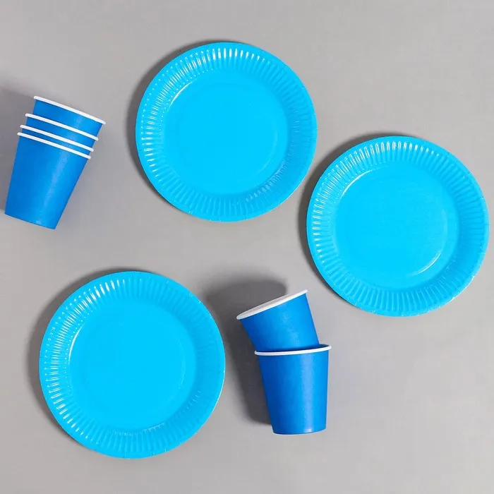 Одноразовая посуда, набор: 6 тарелок, 6 стаканов, цвет голубой — Характеристики