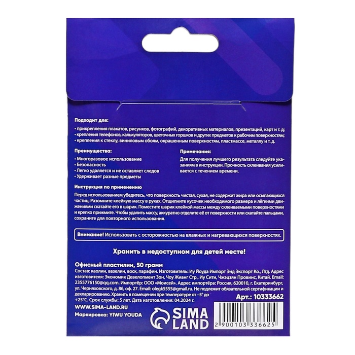 Офисный пластилин многоразового использования — это удобный и практичный продукт, который широко используется для различных целей в офисе и дома. Можно использовать для надежной фиксации офисной техники, такой как веб-камеры или микрофоны. Одной из ключевых особенностей офисного пластилина является его многоразовость: можно легко снять, изменить форму или пересместить продукт без ущерба для поверхности и оригинального качества пластилина. Это делает его удобным и экологически чистым решением по сравнению с одноразовыми клеями или скотчем.
