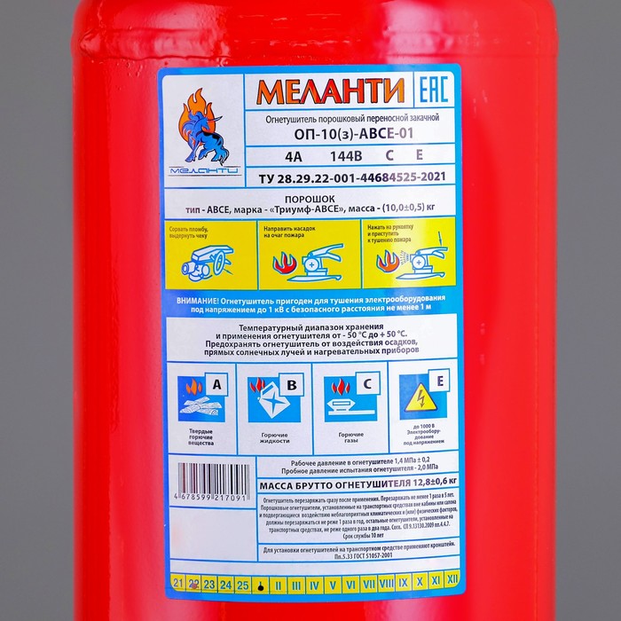 Огнетушитель порошковый ОП-10(з), ABCE — Характеристики