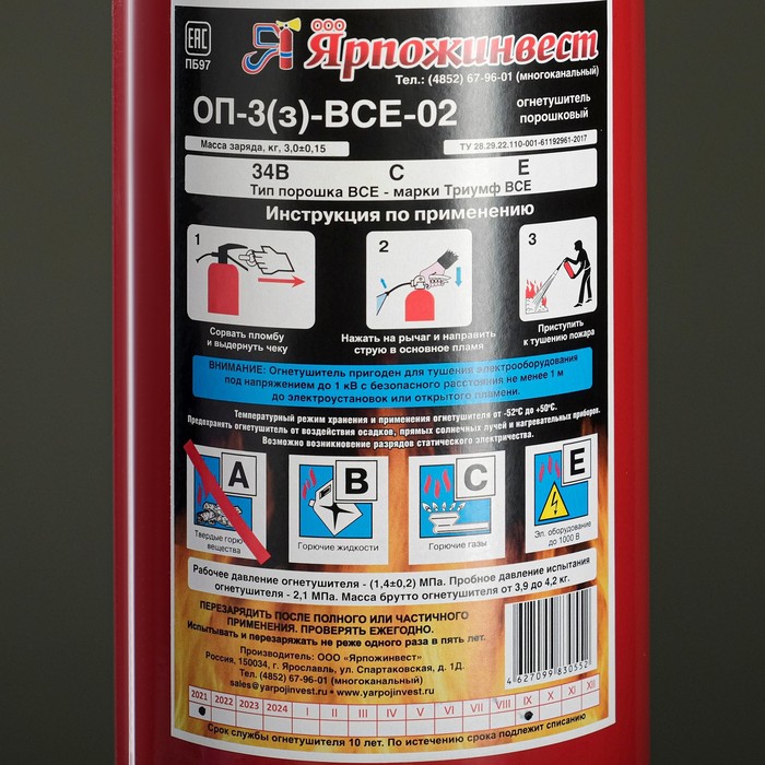 ОП-3 — это универсальный переносной огнетушитель, который устраняет пожары: