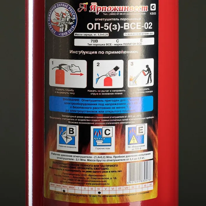 ОП-5 — это универсальный переносной огнетушитель, который устраняет пожары: