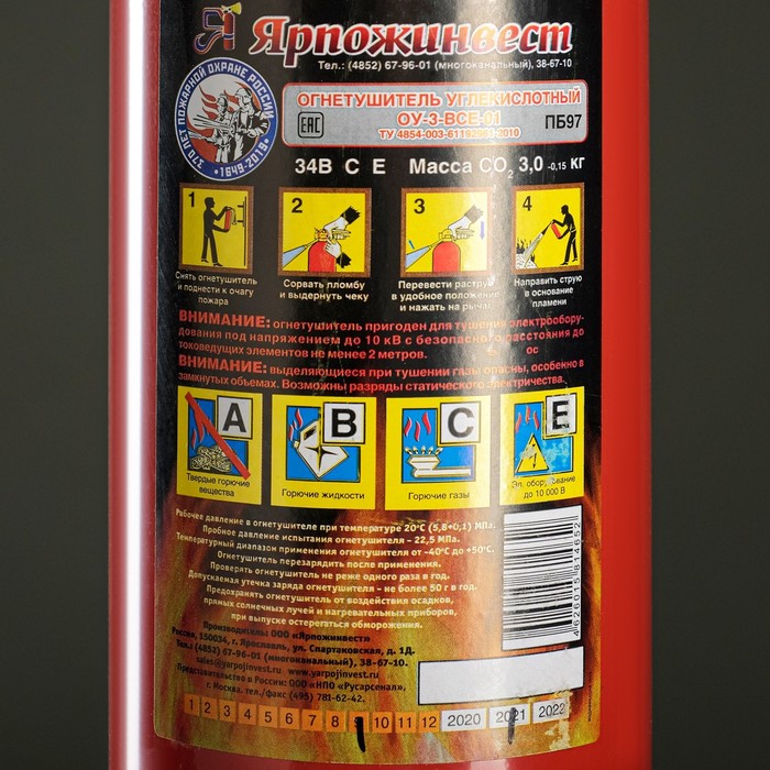 Огнетушитель углекислотный ОУ-3 ВСЕ — Характеристики