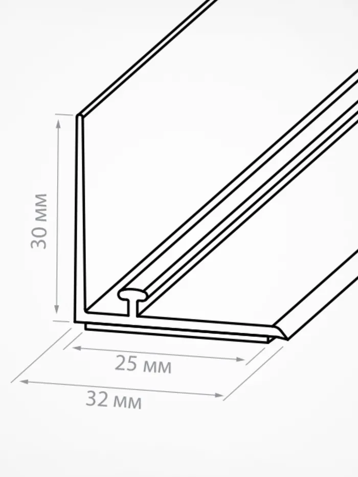 Усиленный L-образный профиль высотой 30 мм, обладающий двойным функционалом. Служит для крепления разделителей с замковым креплением, толкателей и ребристого профиля задней опоры. При этом является передним ограничителем, удерживающим товары на краю полки. Крепится на двухсторонний скотч.