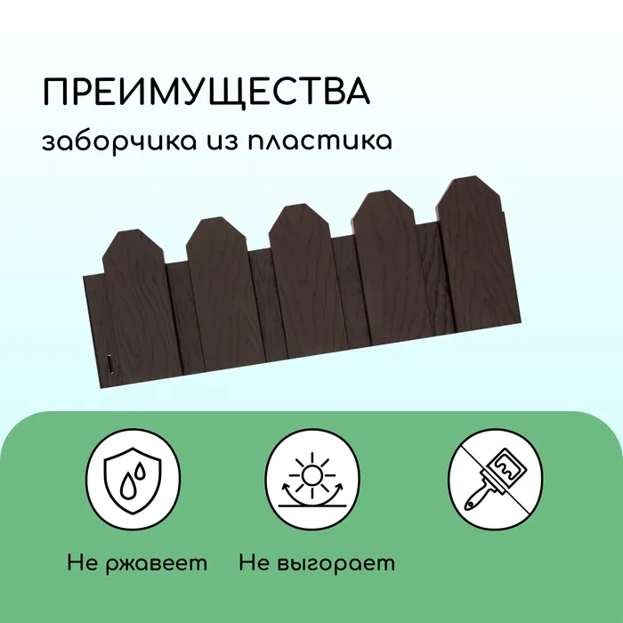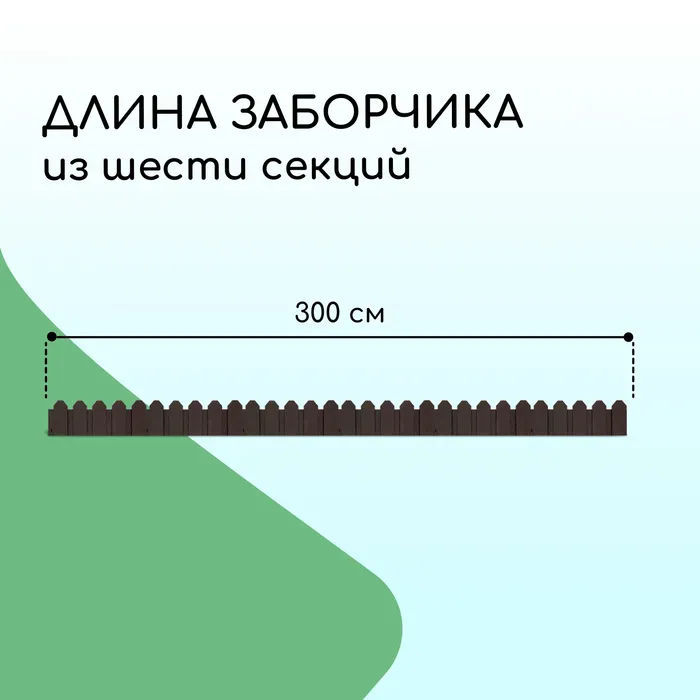 Ограждение декоративное, 18×300 см, 6 секций, пластик, коричневое, «Дачник» — Характеристики