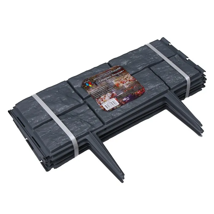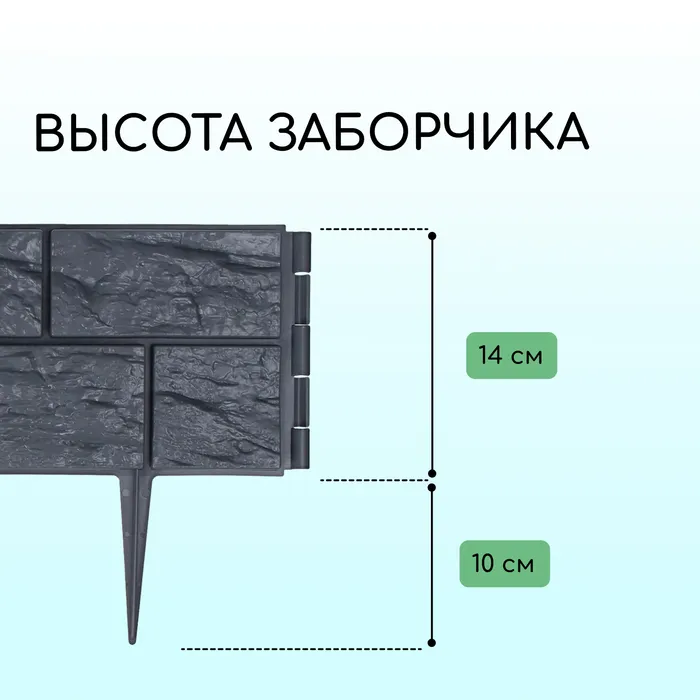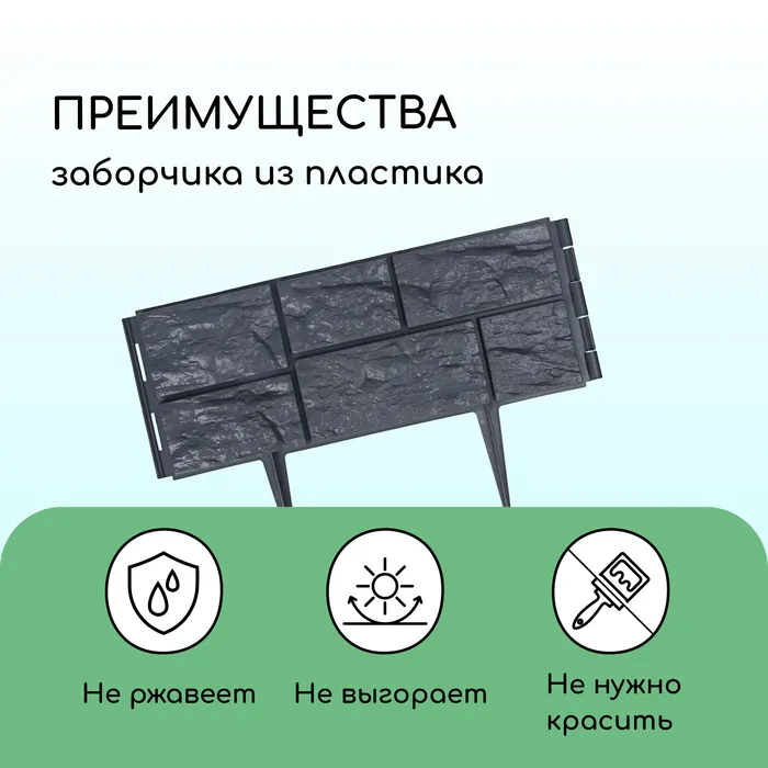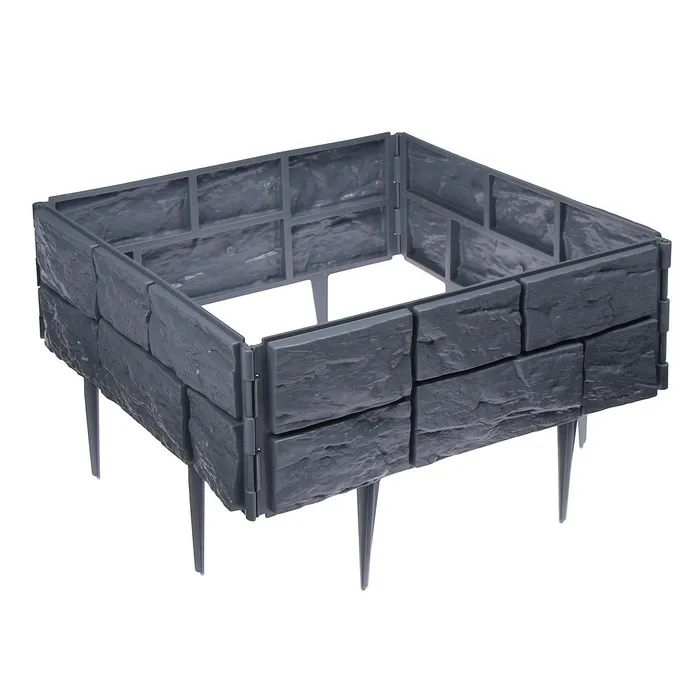 Ограждение декоративное, 24×177.5 см, 5 секций, пластик, серое, «Камень» — Характеристики