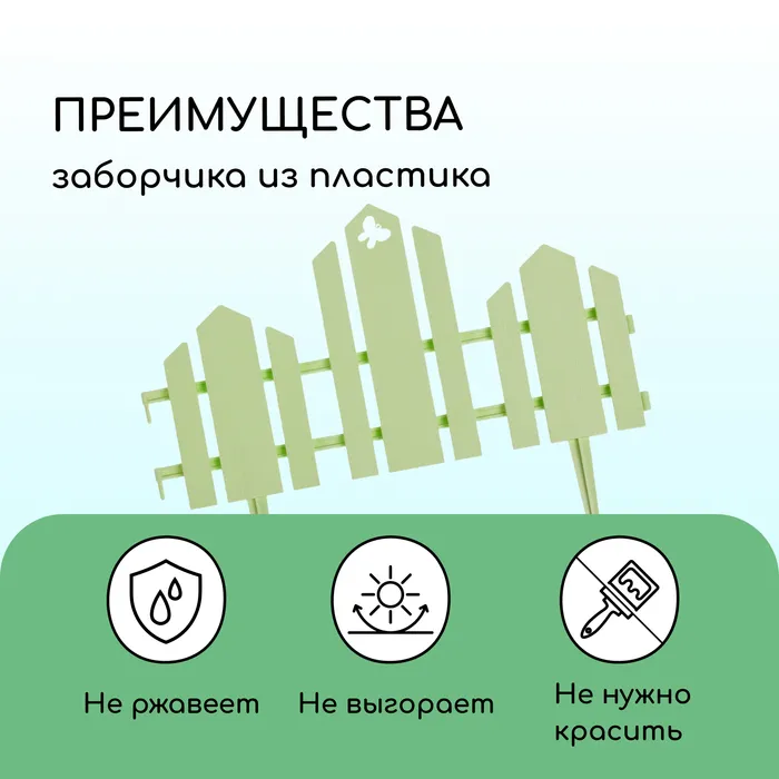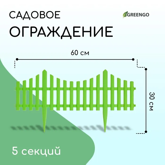 Ограждение декоративное, 25×170 см, 5 секций, пластик, салатовое, «Чудный сад» — Характеристики