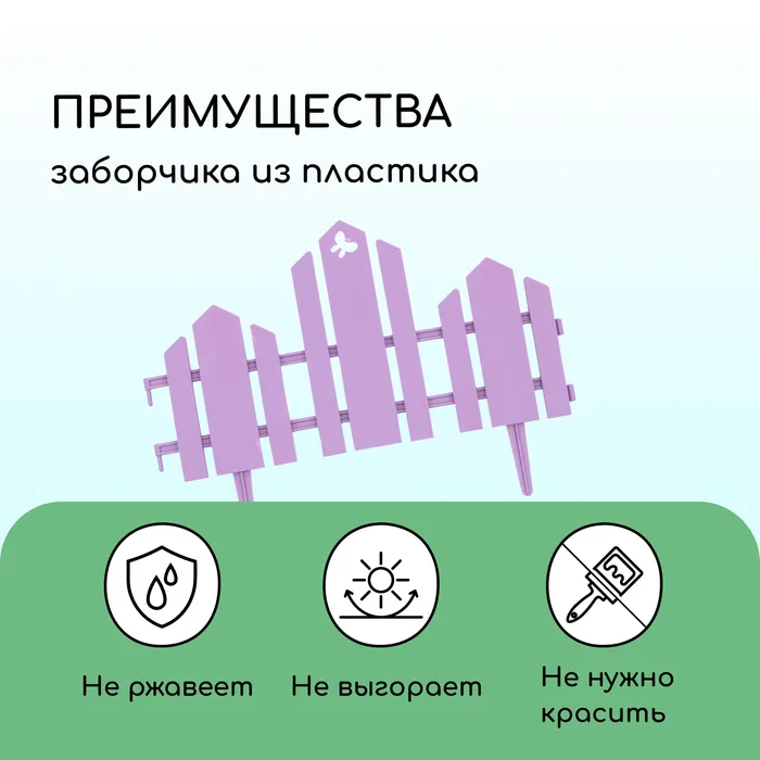 Ограждение декоративное, 25×170 см, 5 секций, пластик, сиреневое, «Чудный сад» — Характеристики