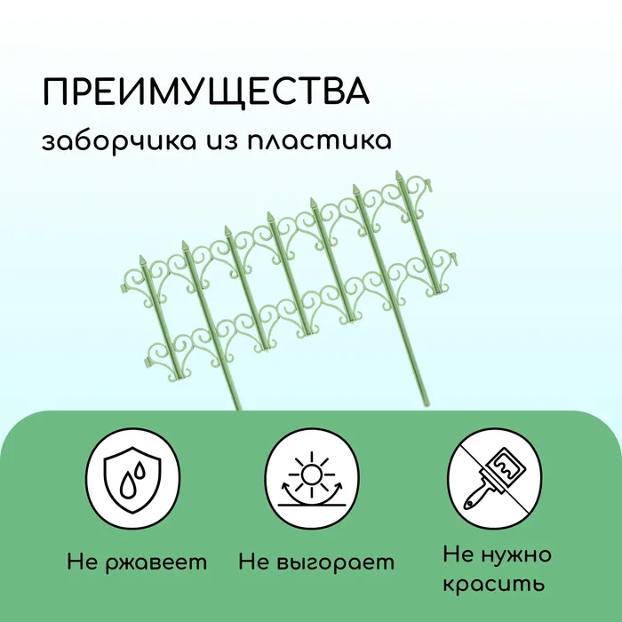 Ограждение декоративное, 25×180 см, 5 секций, пластик, салатовое, «Классика» — Характеристики