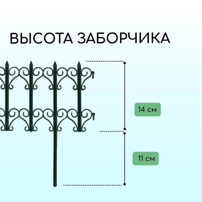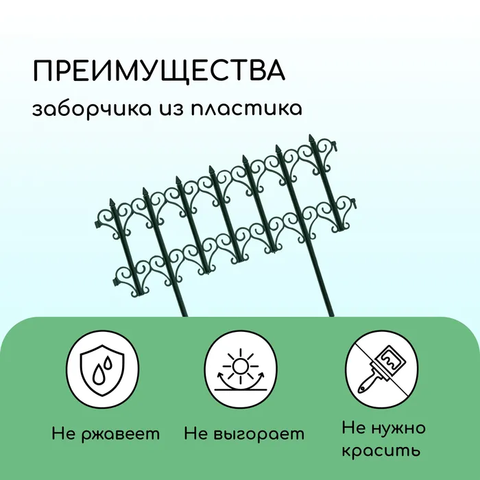 Ограждение декоративное, 25×180 см, 5 секций, пластик, зелёное, «Классика» — Характеристики