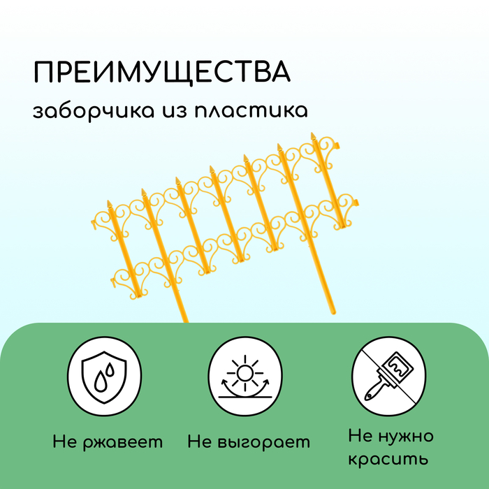 Ограждение декоративное, 25×180 см, 5 секций, пластик, жёлтое, «Классика» — Характеристики